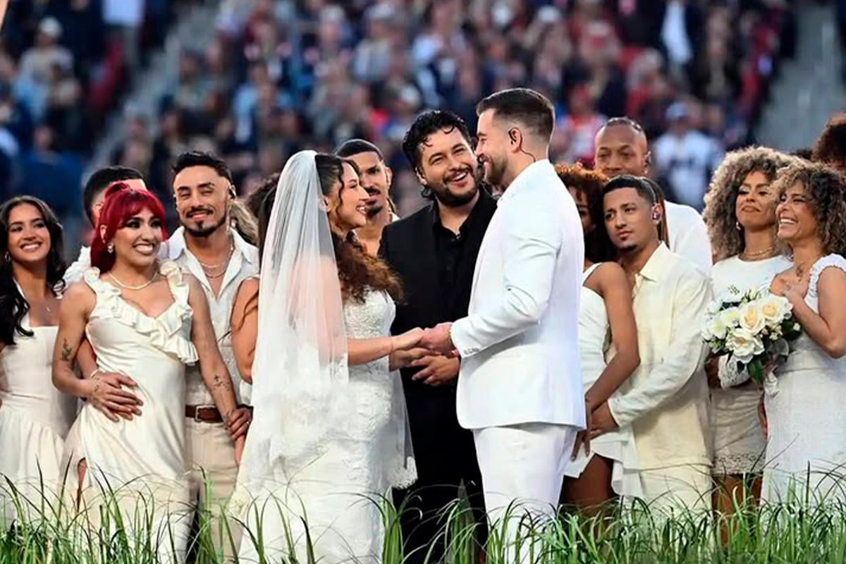 El 8 de febrero de 2026, Bad Bunny hizo vibrar a millones de personas en todo el mundo con su histórico show de medio tiempo del Super Tazón, interpretado casi por completo en español. En el espectáculo de casi 13 minutos, el cantante puertorriqueño celebró la cultura latina: desde dar visibilidad a negocios pequeños con el folclore, la historia, las raíces, los sabores, el ritmo, hasta el poderoso mensaje de denuncia, unión, orgullo y amor. Sin embargo, uno de los momentos más comentados ha sido cuando una pareja contrajo matrimonio en medio del estadio. Sí, porque el encantador enlace no fue solo una puesta en escena, ¡se trató de una BODA REAL en el Super Bowl LX! Aquí tenemos todos los detalles de cómo el ‘Conejo Malo’ invitó a estos novios ser parte del show en el Levi’s Stadium, en Santa Clara, California.